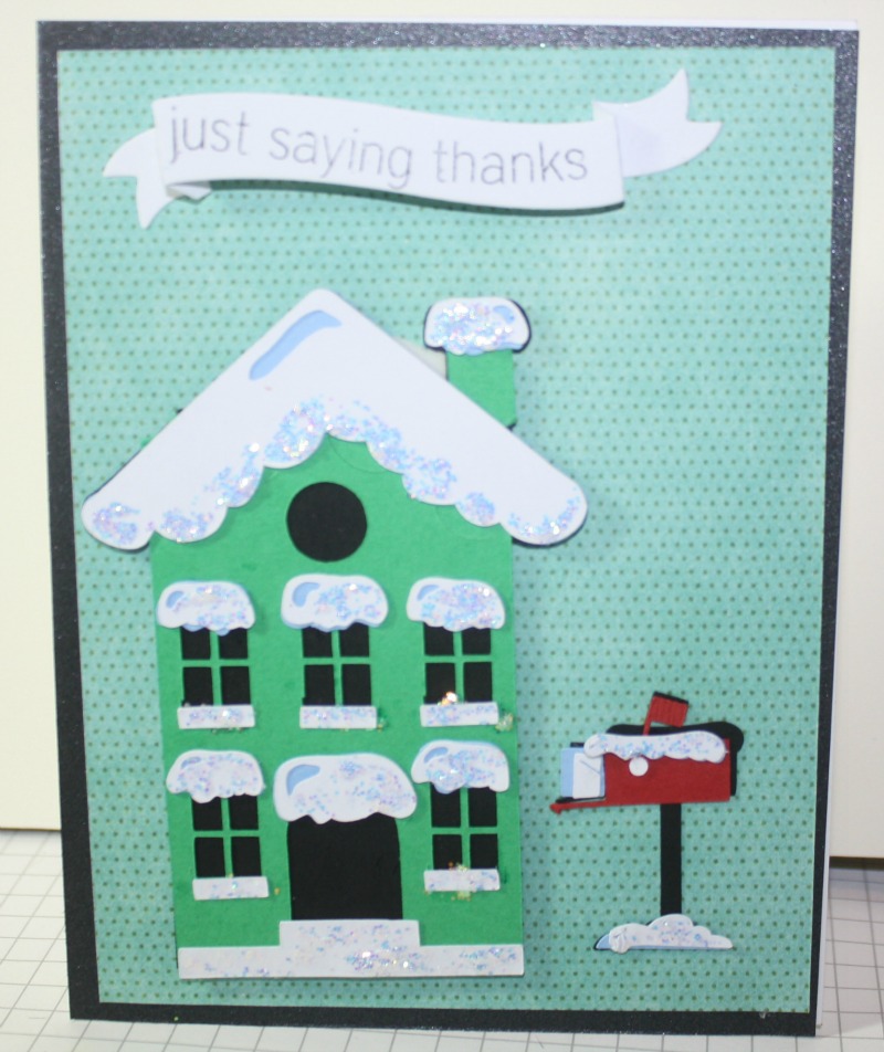 I am back today with another winter thank you card. It's great to still be able to use holiday paper and some holiday Cricut cartridges that I didn't get a chance to use during the holidays.